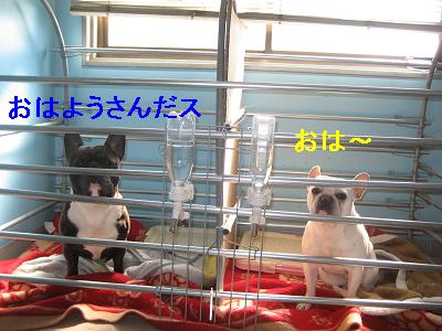 親父手作りのケージにお泊りした新右衛門と御餅。