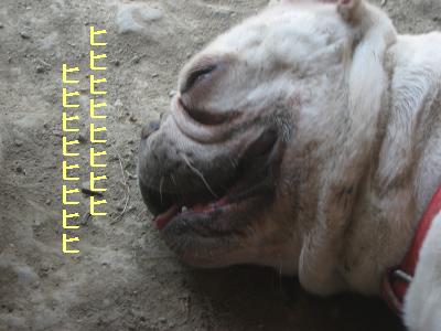 目がアブナ過ぎるし、口の周りが泥で真っ黒だ・・・