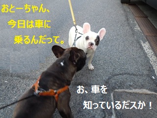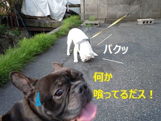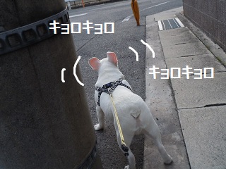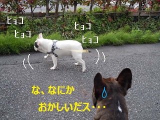 アスファルトの感覚も初めて味わいます! が、歩き方がおかしい・・・爆笑。