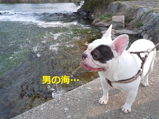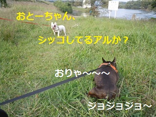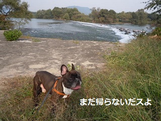 フラついて川に落ちやしないかと気が気じゃありません!リードを持つ手に力が入ります。